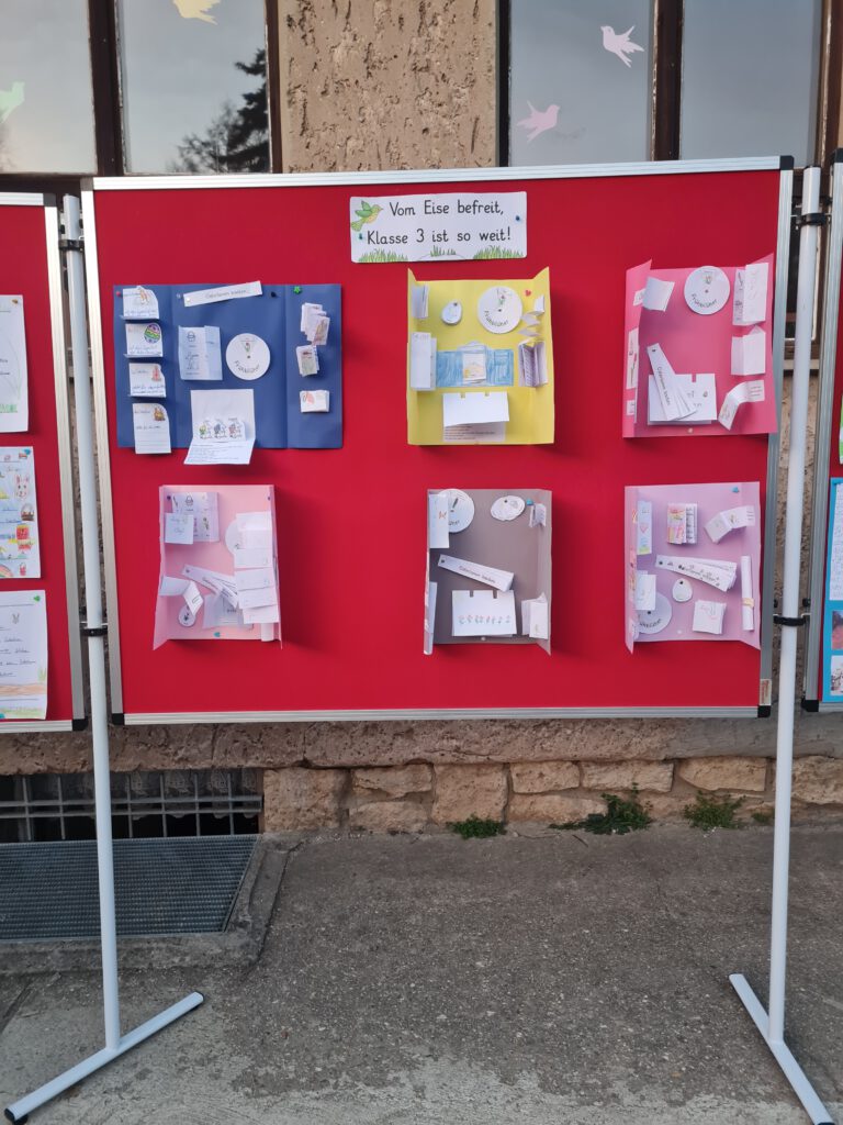 Stellwände zeigten einige Arbeitsergebnisse der Kinder aus der Projektwoche.