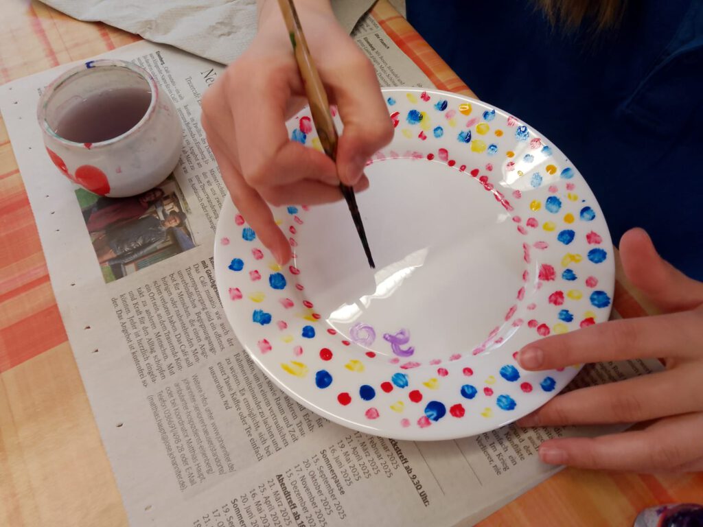Am nächsten Tag haben wir unsere Zähne geputzt und dann ging es schon zum Frühstück. Als wir fertig waren, gab es schon 2 Angebote: 1. Kerzen herstellen, 2. Porzellan bemalen. Wir waren gut aufgeteilt und hatten alle viel Spaß. Danach gingen wir raus und spielten. Zum Mittagessen gab es Kartoffeln und Quark. Alle ruhten sich aus und dann gab es wieder ein Angebot: 1. Beutel bedrucken, 2. Filzen. Nach den Angeboten machten wir einen Spaziergang. Wir haben Fuchsbaue gesehen. Es wurde Abend und es gab wieder Brot. Nach dem Essen haben wir einen Filmabend gemacht. Wir haben die Trolls geguckt. Es war witzig. Der Film war zu Ende und es war schon 21:30 Uhr. Also schnell ins Bett.